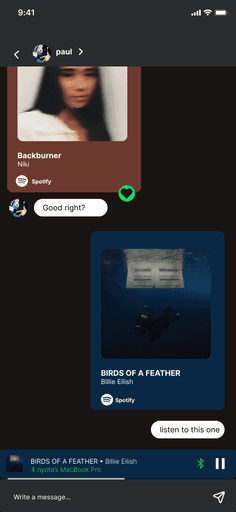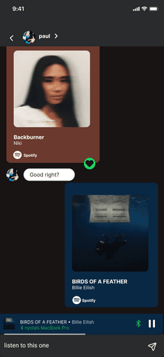 Spotify Messenger connects you to all of your friends without ever interrupting your app experience.