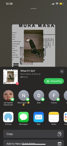 Apple Music is integrated within the Apple ecosystem, so the app's content only makes sense to be shared primarily through messages.