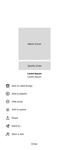 Initially, I separated the options to either send to friends through Spotify or to share externally; however, since they were sharing to friends regardless, it made more sense for the direct feature to fall under the same menu.