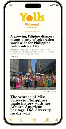 As a fellow member of the AAPI community and growing up in a predominantly white neighborhood, I know how difficult is can be to often find ways to get in touch with my Filipino roots beyond my family. It's the reason why I joined Filipino/AAPI communities as I grew older to find the resources and people that I can relate to most. After interviewing and seeing surveys of other AAPI who resonate with an idea to connect and better inform us of our identities, I truly see the value in generating an app such as Yolk.